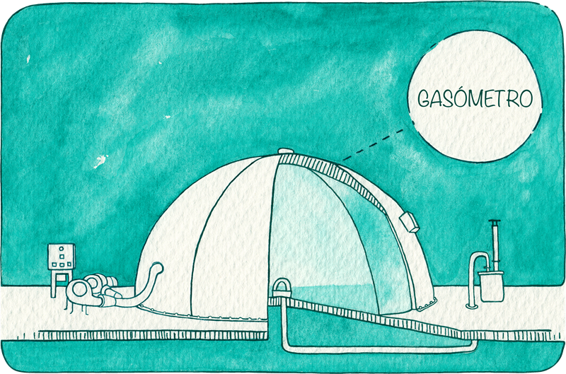 Este almacenamiento de baja presión (150m3) recibirá hidrógeno de la producción (electrolizadores) y también de los compresores baja presión y de la purificación (recirculado). Este sistema contendrá hidrógeno a 0,035barg, que se enviará al circuito en un skid de condesados para eliminar agua nuevamente.
