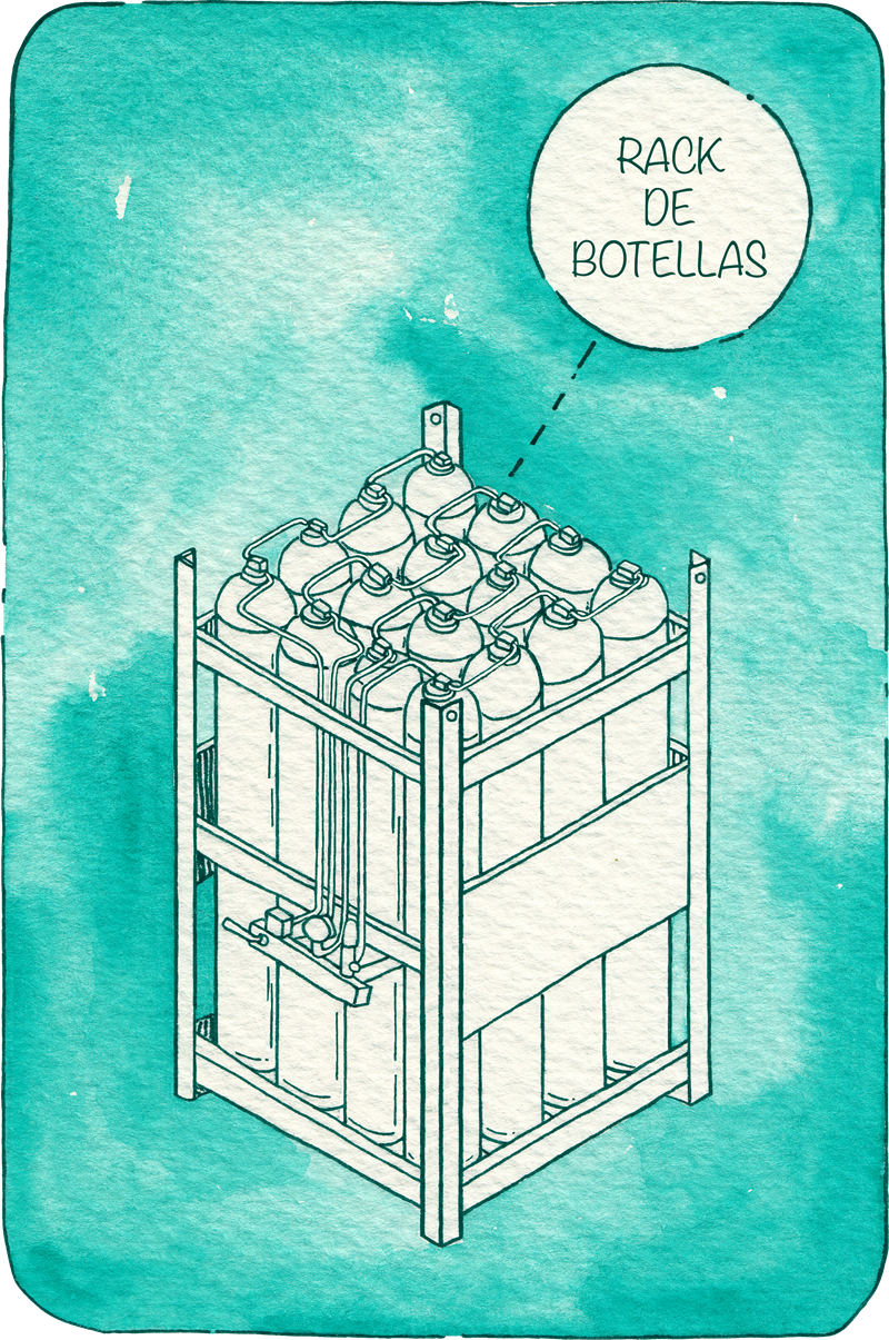 En 4 Racks acumulará hidrógeno hasta 500bar, que recibirá del almacenamiento del compresor y lo suministrará al dispensador y al compresor de muy alta presión.