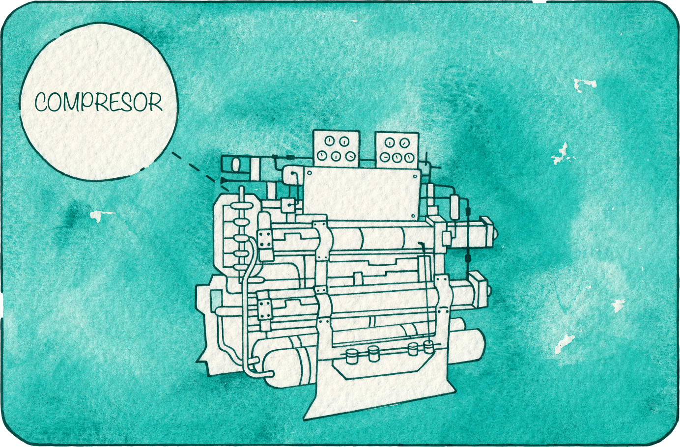 Transferirá hidrógeno del almacenamiento de media presión a los almacenamientos de alta presión, aumentando la presión de 40 bar a 500 bar.